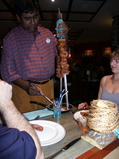 Das Fleisch wird vom Spieß serviert |