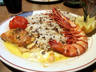 Lachs mit Gambas |
