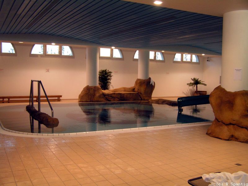 über 400 Zimmer, Restaurant, Bar und Hallenbad. In diesem Hotel