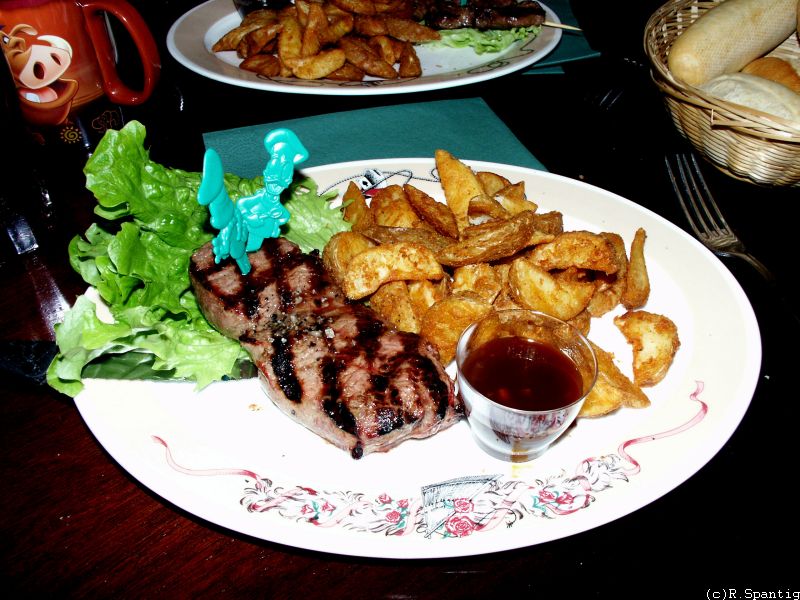 Steak mit Kartoffelecken oder Fischfilet mit Karottenpüree oder